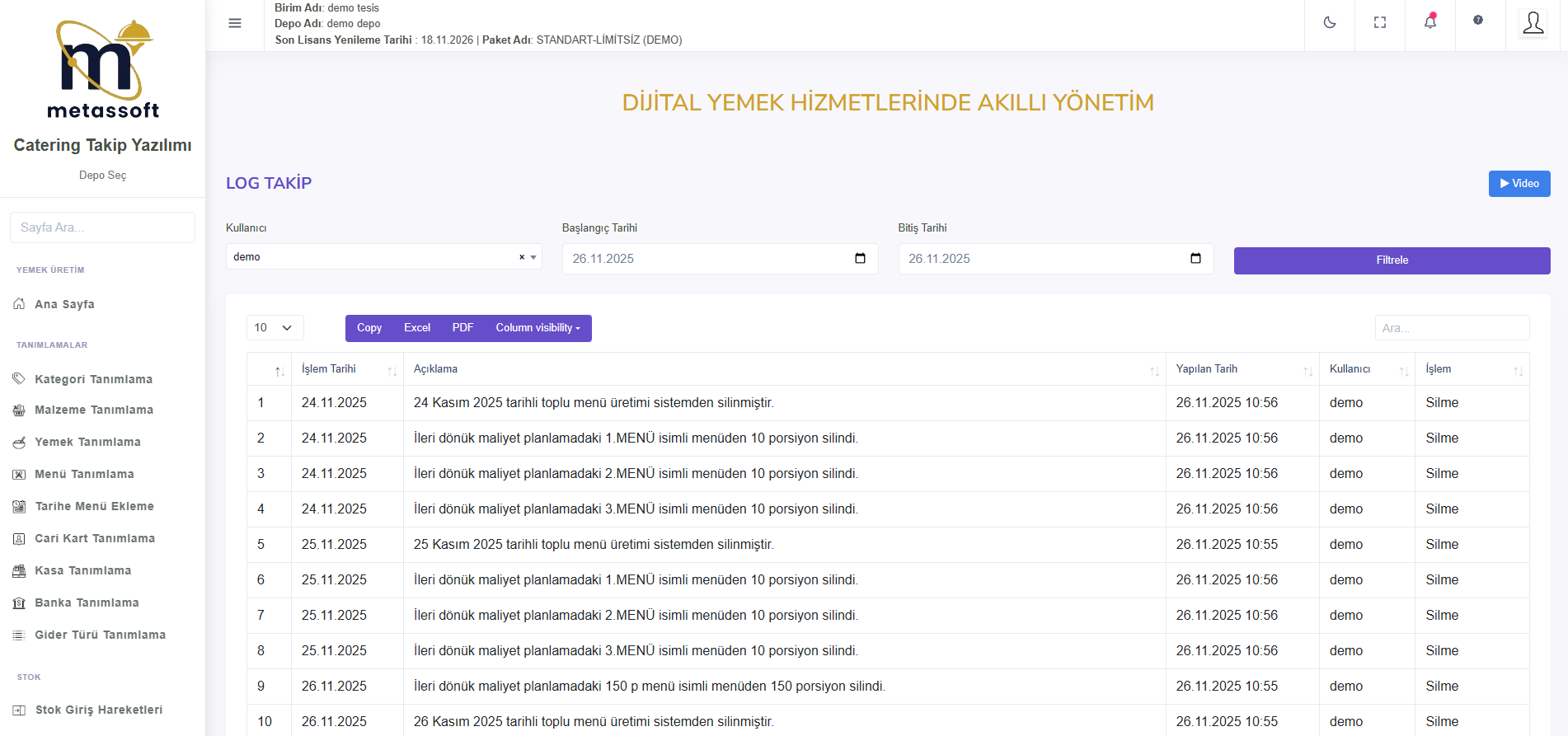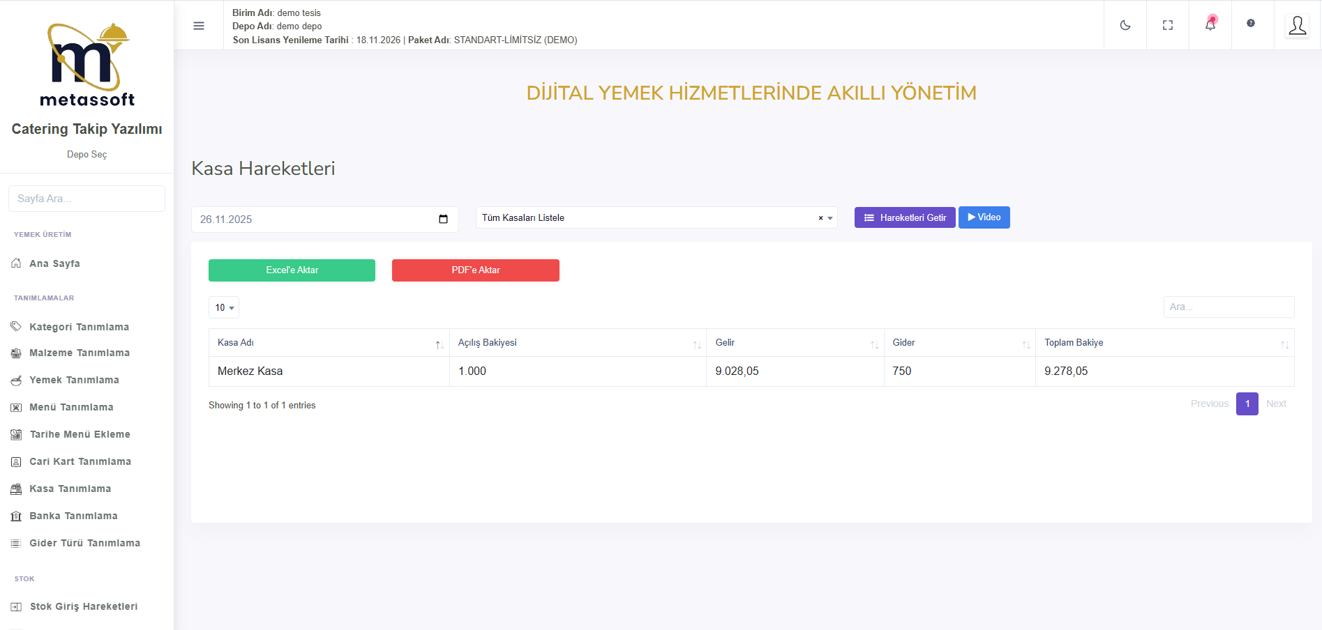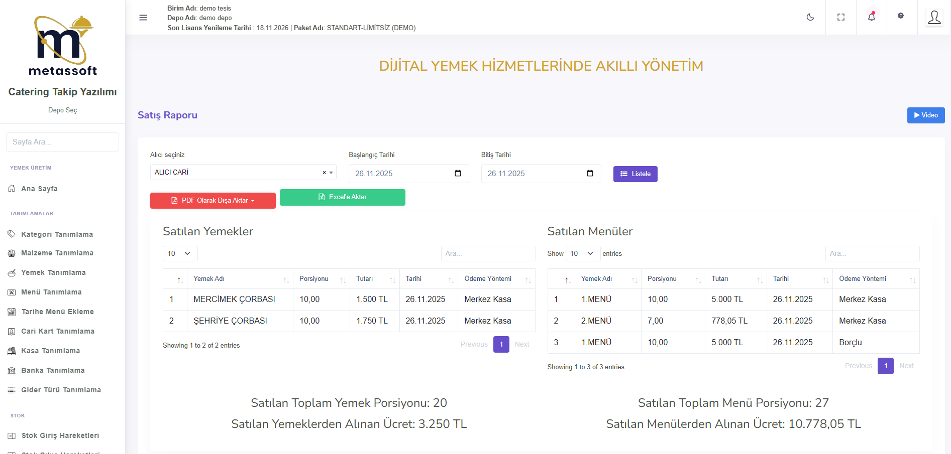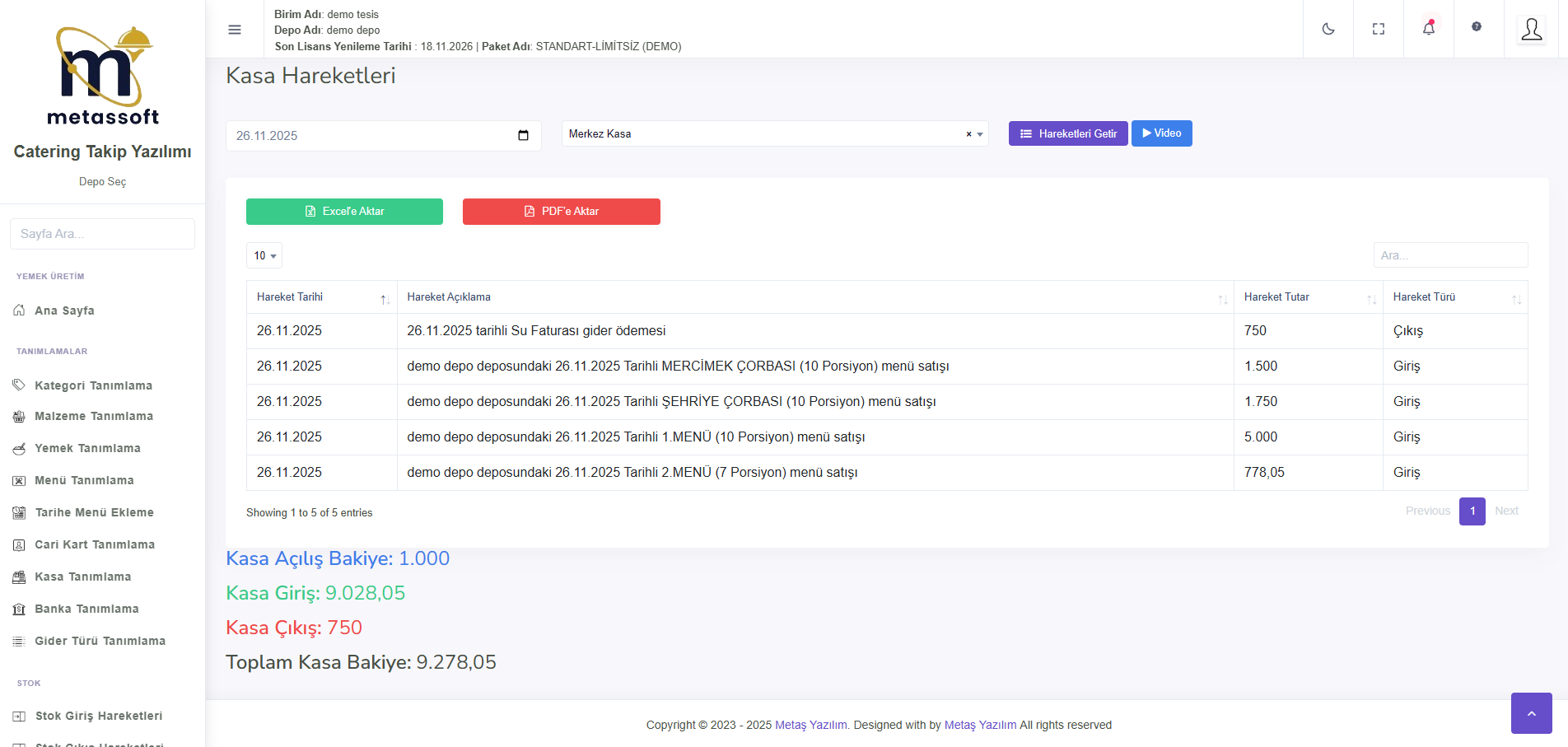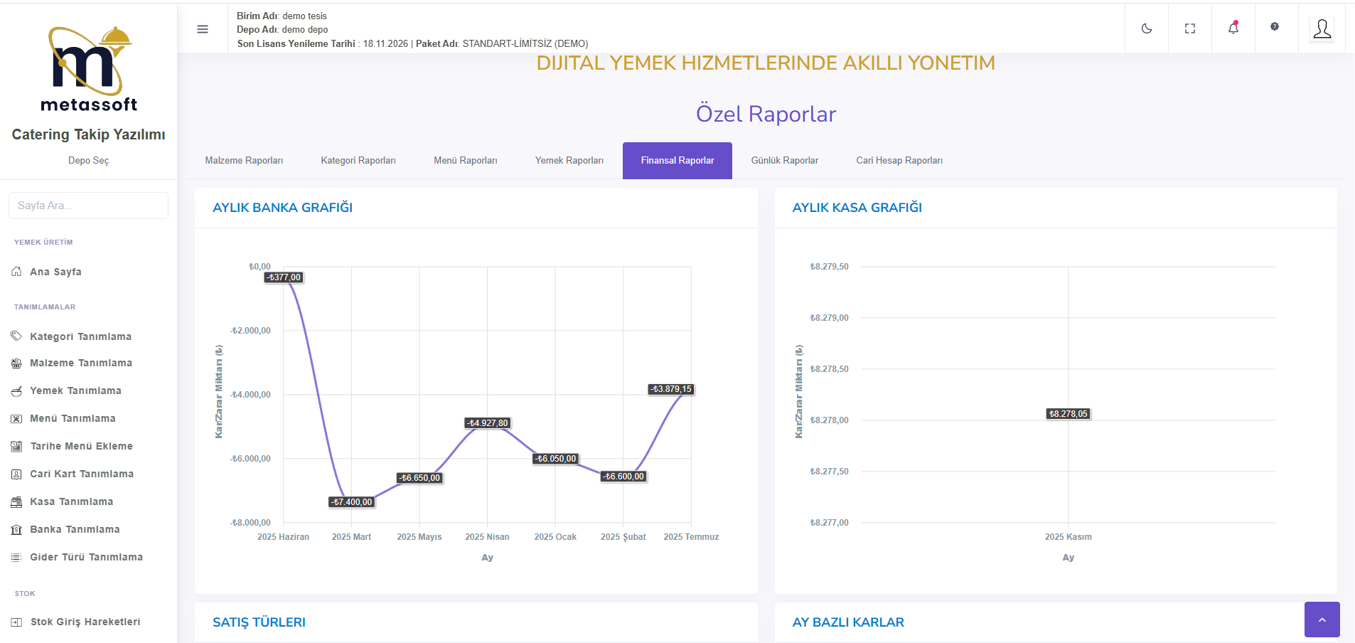 Menü Maliyet Raporu, seçilen tarihte üretilen menülerin maliyetlerini detaylı şekilde inceleyerek maliyet analizine yardımcı olur. Yemek Maliyet Raporu, üretilen yemeklerin maliyetlerini ayrıntılı olarak gösterir. Banka ve Kasa Hareketleri raporu, giren ve çıkan paraları ve toplam tutarı göstererek tüm finansal hareketleri satır satır listeler.