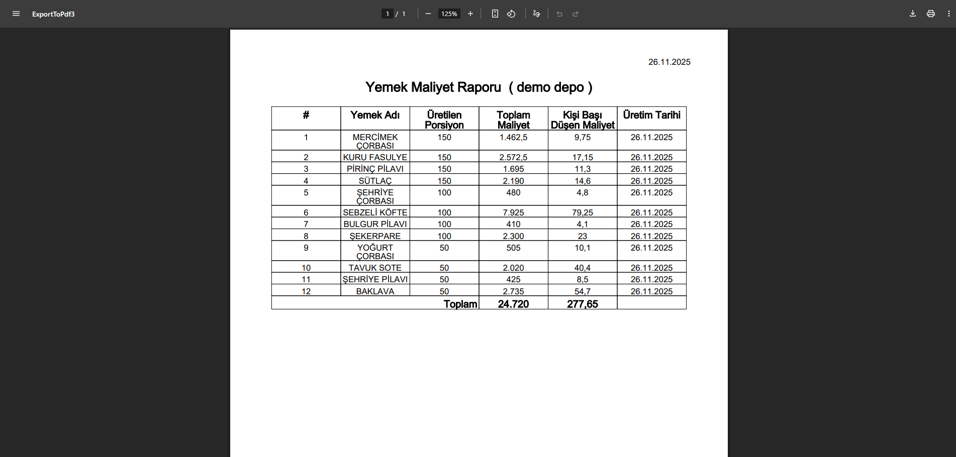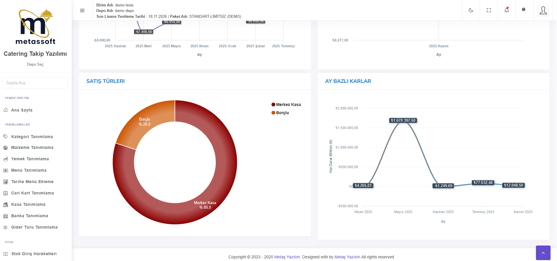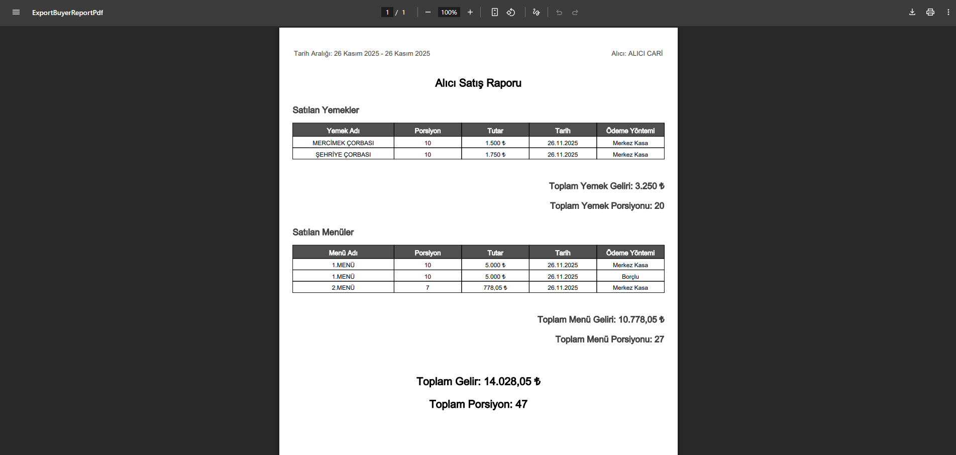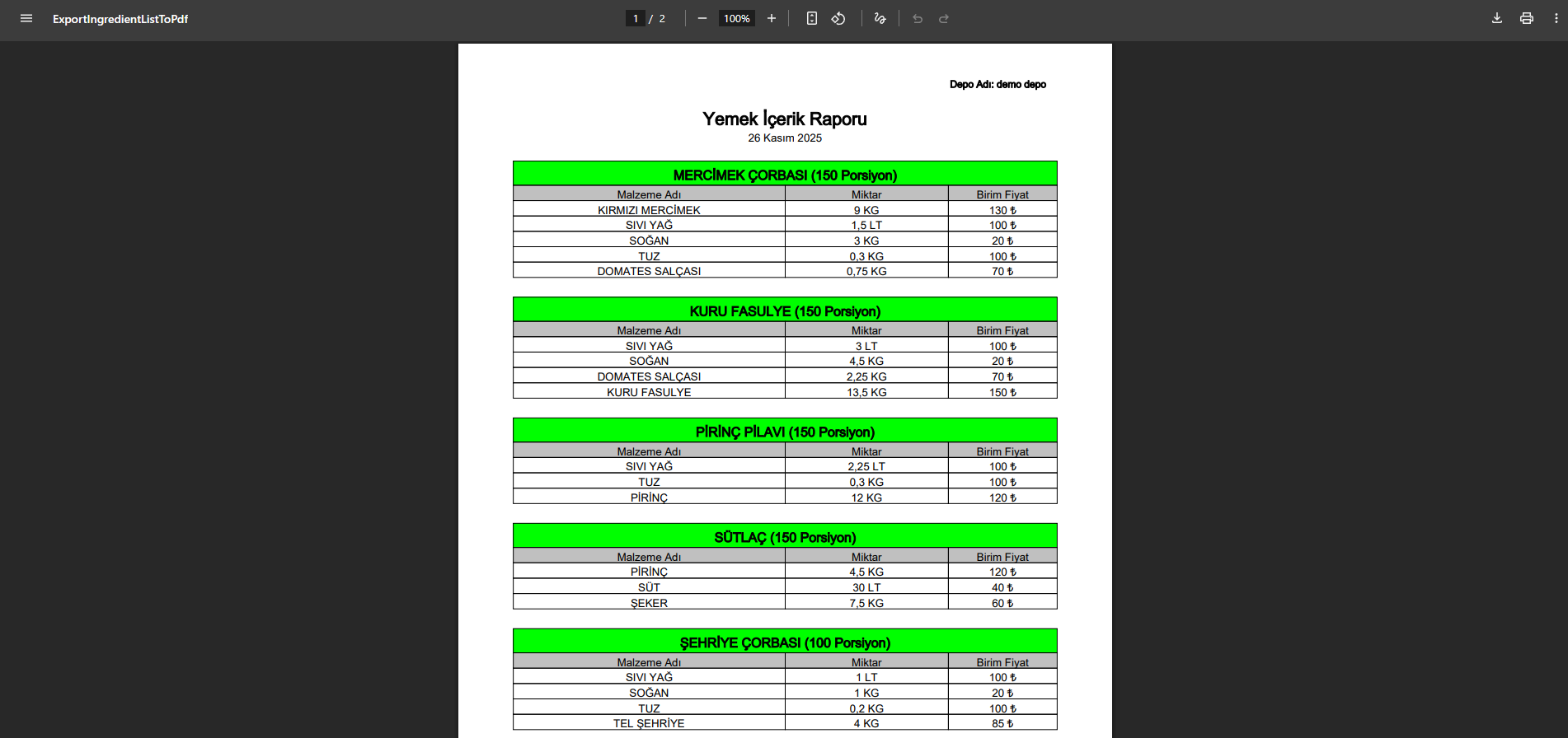 Menü Maliyet Raporu, seçilen tarihte üretilen menülerin maliyetlerini detaylı şekilde inceleyerek maliyet analizine yardımcı olur. Yemek Maliyet Raporu, üretilen yemeklerin maliyetlerini ayrıntılı olarak gösterir. Banka ve Kasa Hareketleri raporu, giren ve çıkan paraları ve toplam tutarı göstererek tüm finansal hareketleri satır satır listeler.
