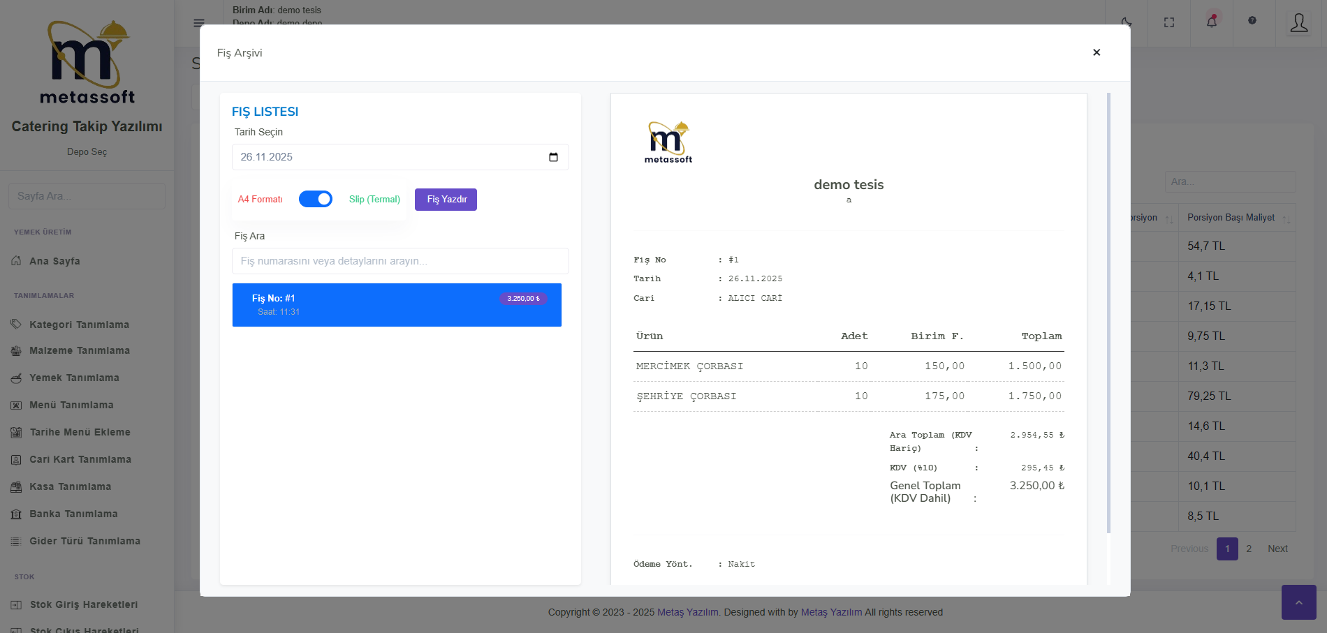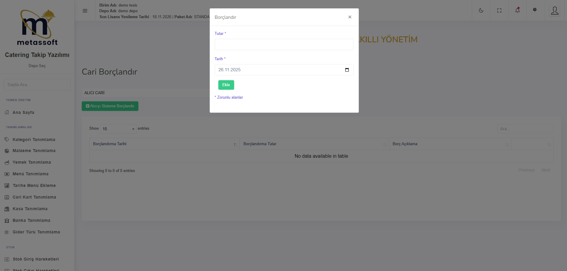 • Ön muhasebe modülünde, gider kayıtları girilir ve yemek ile menü satışları yapılır. Bu süreçte, borç ödemeleri ve alacak tahsilatları düzenli olarak yapılır. Böylece, işletmenin mali akışları takip edilir ve finansal işlemler şeffaf bir şekilde yönetilir.
